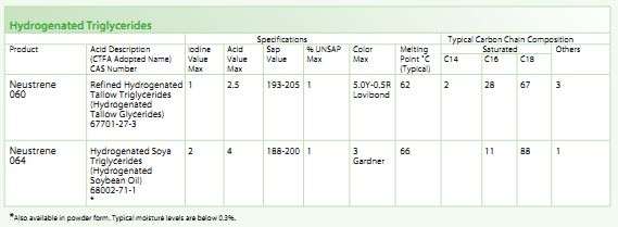 Neustrene® hydrogenated triglycerides are produced from selected animal